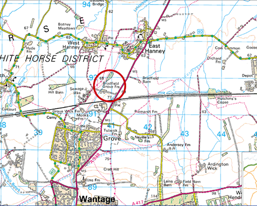 Bradfield Grove Farm can be found on the right and identified